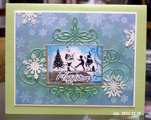 背景是用distress stain 塗的,這東西很奇怪有時覺得好用,有時又覺得真難用,還是要選擇表面稍光滑的紙張比較不容易失敗,現在又出白色的,那就更好了,不喜歡的部份可用白色遮蓋或調淡